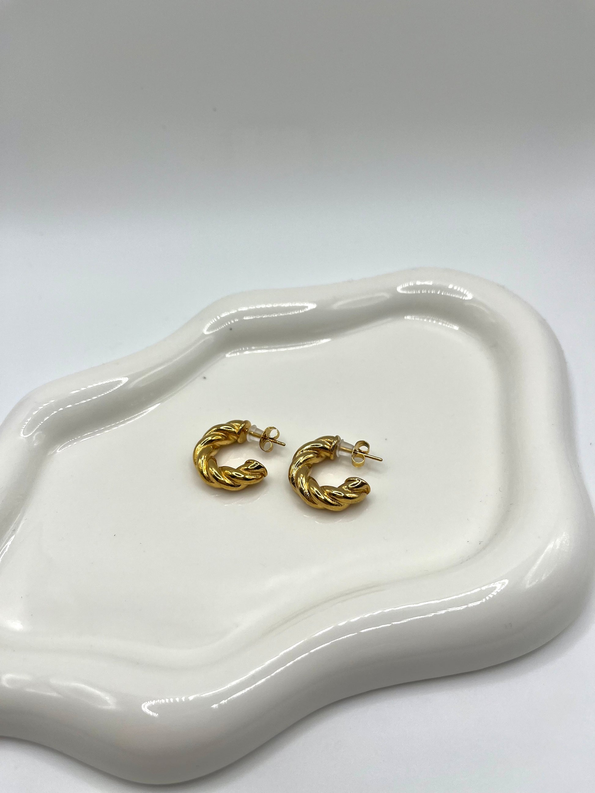 Estes brincos dourados torcidos unem elegância e modernidade num design único. Produzidos em aço inoxidável antialérgico, oferecem brilho intenso e resistência à oxidação, ideais para quem procura joias duradouras sem perder o estilo.