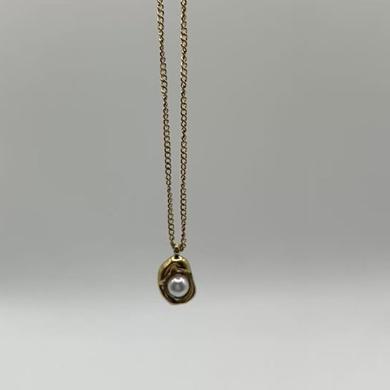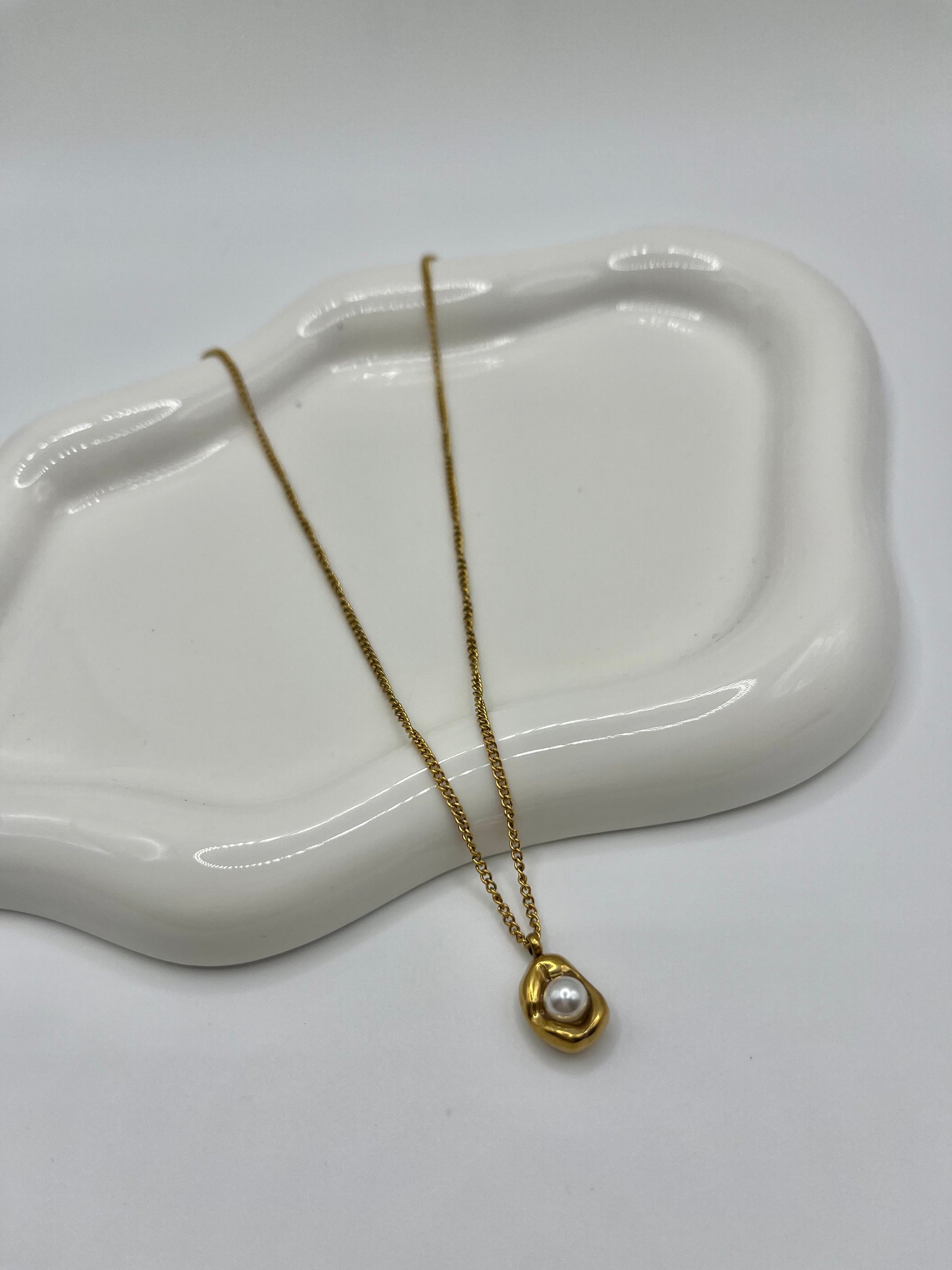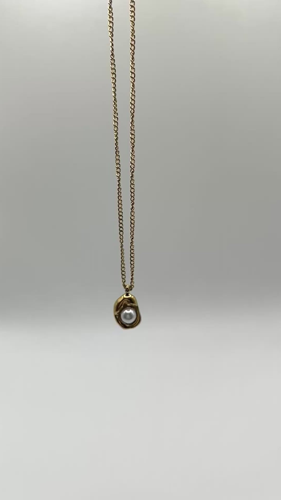 O colar dourado com pérola em aço inoxidável é a combinação perfeita entre delicadeza e sofisticação. O design moderno com pingente dourado irregular e pérola central confere charme único, tornando-o ideal para quem procura uma joia elegante e atemporal.